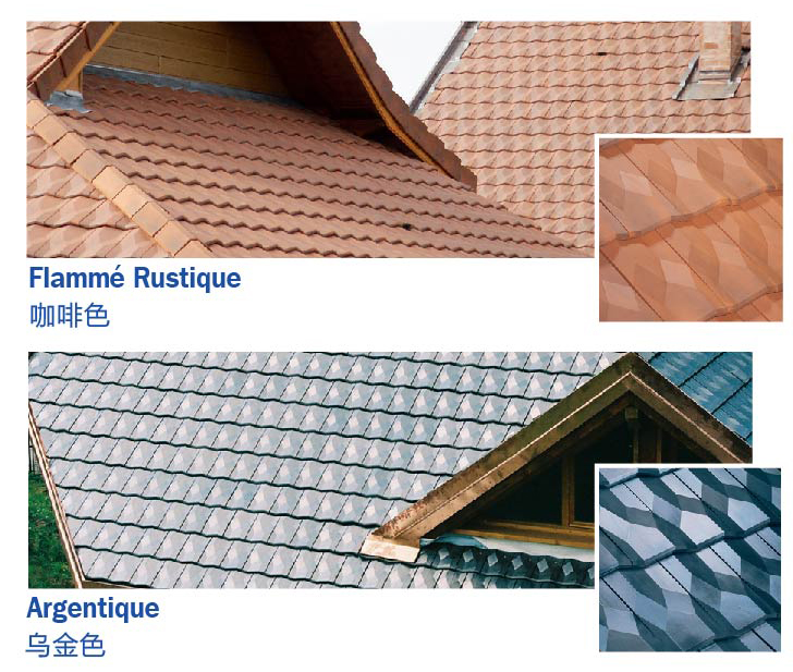 钻石瓦在大面积铺设时,八个切面会形成光与影的折射,使屋面变幻多端,熠熠生辉。 视角不同, 图案各异, 颜色变幻。而这种变幻赋予了建筑物以更多的设计美感和艺术表现力。