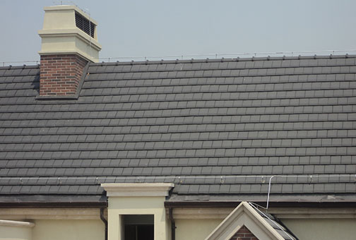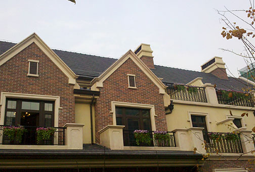 润泽庄园·墅郡选用法国伊美瑞的HP13 黑色带榫槽的大平板瓦,这种瓦型平整、现代、雅致,完全体现了英伦风格建筑的大气沉稳