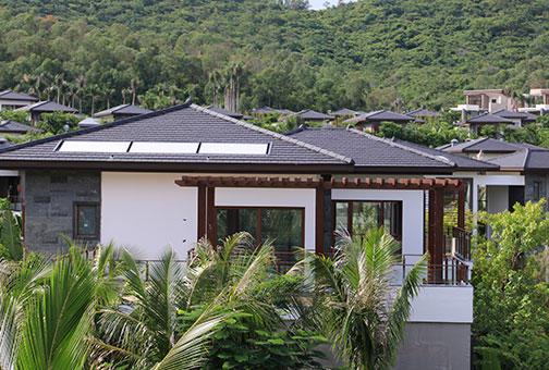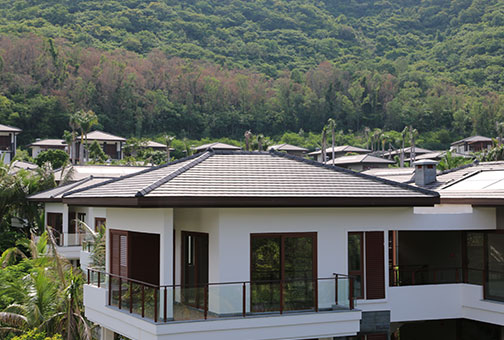 西山渡屋面系统精选法国伊美瑞博维瓦(BEAUVOISE),伊美瑞的黑色小平板瓦,具有法国陶土瓦特有的天然的质感和色调,和优美的自然环境相得益彰,展示出低调的奢华。