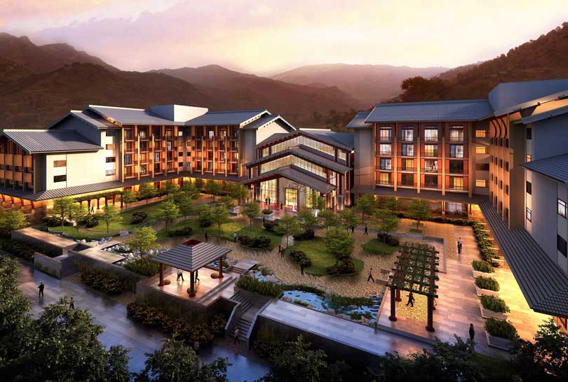 酒店建筑共五层,占地247亩,总投资达15亿元,规划总建筑面积65800㎡,这是山西省五台山风景区内第一家五星级国际酒店,